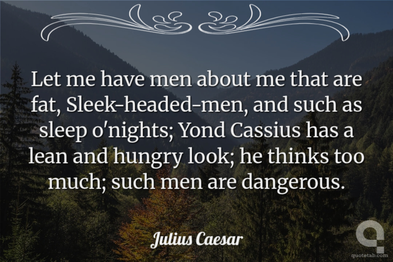 Let me have men about me that are fat, Sleek-headed-men, and such as sleep o'nights; Yond Cassius has a lean and hungry look; he thinks too much; such men are dangerous.