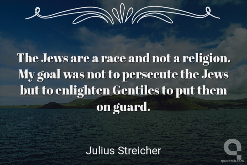 The Jews are a race and not a religion. My goal was not to persecute the Jews but to enlighten Gentiles to put them on guard.