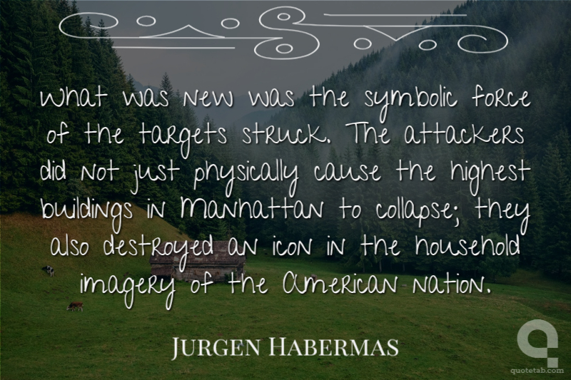 What was new was the symbolic force of the targets struck. The attackers did not just physically cause the highest buildings in Manhattan to collapse; they also destroyed an icon in the household imagery of the American nation.
