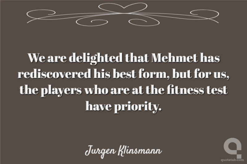 We are delighted that Mehmet has rediscovered his best form, but for us, the players who are at the fitness test have priority.