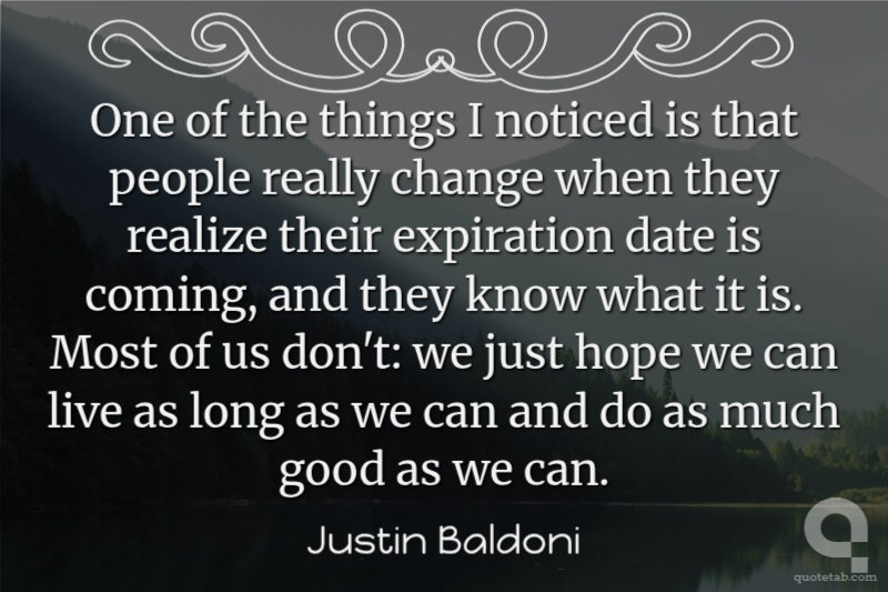 One of the things I noticed is that people really change when they realize their expiration date is coming, and they know what it is. Most of us don't: we just hope we can live as long as we can and do as much good as we can.