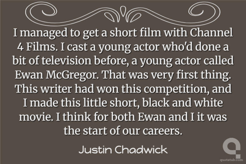 I managed to get a short film with Channel 4 Films. I cast a young actor who'd done a bit of television before, a young actor called Ewan McGregor. That was very first thing. This writer had won this competition, and I made this little short, black and white movie. I think for both Ewan and I it was the start of our careers.