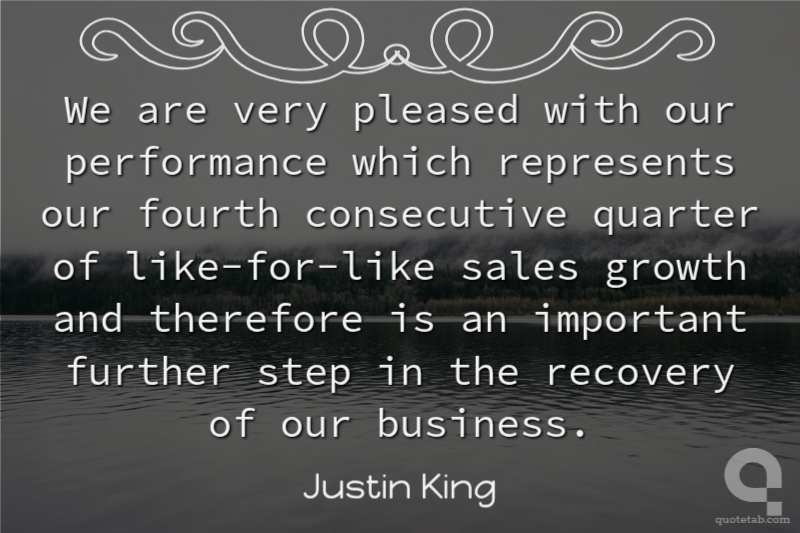 We are very pleased with our performance which represents our fourth consecutive quarter of like-for-like sales growth and therefore is an important further step in the recovery of our business.