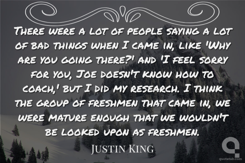 There were a lot of people saying a lot of bad things when I came in, like 'Why are you going there?' and 'I feel sorry for you, Joe doesn't know how to coach,' but I did my research. I think the group of freshmen that came in, we were mature enough that we wouldn't be looked upon as freshmen.
