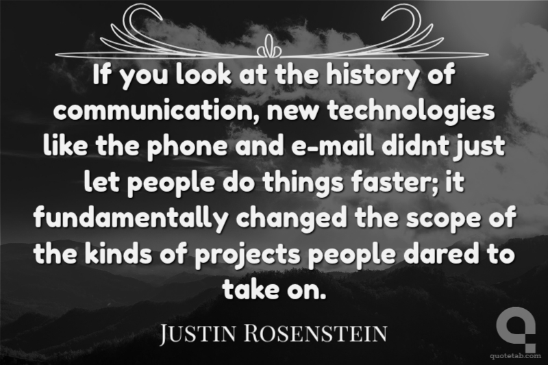 If you look at the history of communication, new technologies like the phone and e-mail didnt just let people do things faster; it fundamentally changed the scope of the kinds of projects people dared to take on.