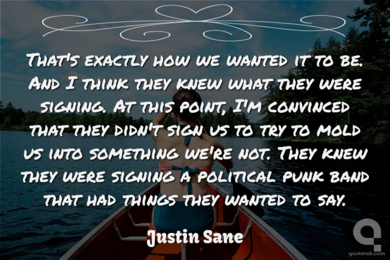 That's exactly how we wanted it to be. And I think they knew what they were signing. At this point, I'm convinced that they didn't sign us to try to mold us into something we're not. They knew they were signing a political punk band that had things they wanted to say.