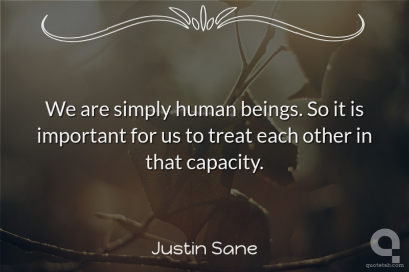 We are simply human beings. So it is important for us to treat each other in that capacity.