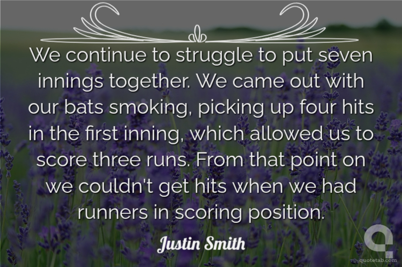 We continue to struggle to put seven innings together. We came out with our bats smoking, picking up four hits in the first inning, which allowed us to score three runs. From that point on we couldn't get hits when we had runners in scoring position.