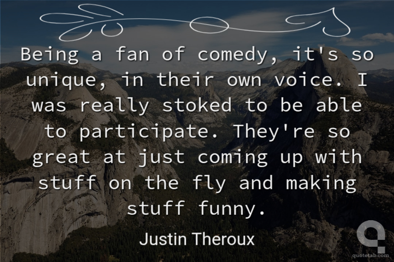 Being a fan of comedy, it's so unique, in their own voice. I was really stoked to be able to participate. They're so great at just coming up with stuff on the fly and making stuff funny.