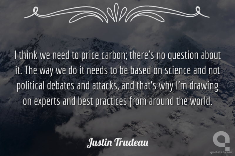 I think we need to price carbon; there's no question about it. The way we do it needs to be based on science and not political debates and attacks, and that's why I'm drawing on experts and best practices from around the world.
