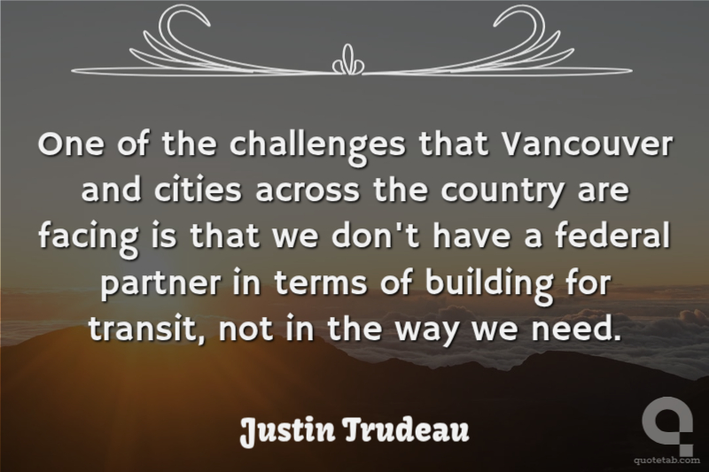 One of the challenges that Vancouver and cities across the country are facing is that we don't have a federal partner in terms of building for transit, not in the way we need.
