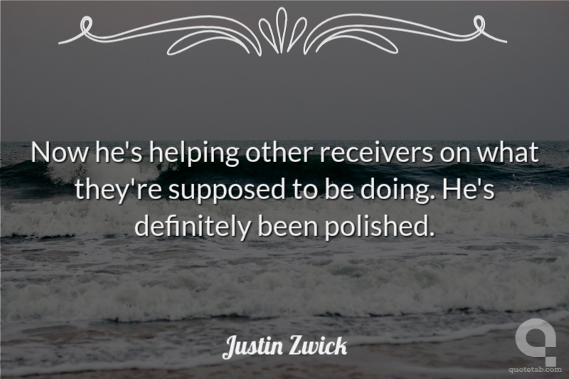 Now he's helping other receivers on what they're supposed to be doing. He's definitely been polished.