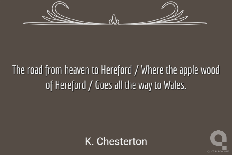 The road from heaven to Hereford / Where the apple wood of Hereford / Goes all the way to Wales.