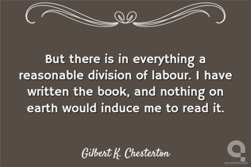 But there is in everything a reasonable division of labour. I have written the book, and nothing on earth would induce me to read it.