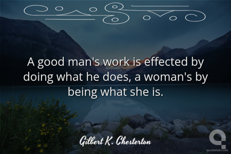 A good man's work is effected by doing what he does, a woman's by being what she is.