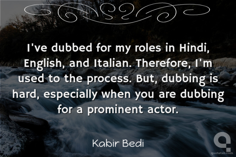 I've dubbed for my roles in Hindi, English, and Italian. Therefore, I'm used to the process. But, dubbing is hard, especially when you are dubbing for a prominent actor.