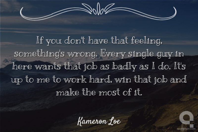 If you don't have that feeling, something's wrong. Every single guy in here wants that job as badly as I do. It's up to me to work hard, win that job and make the most of it.
