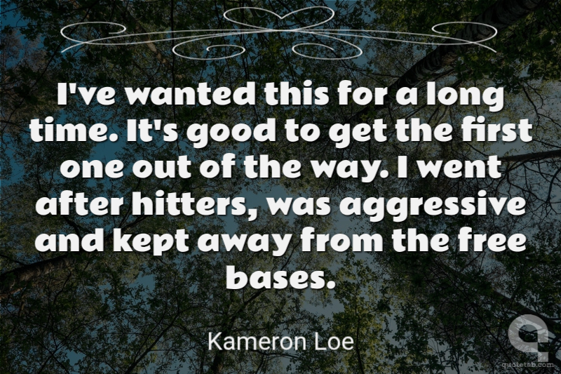 I've wanted this for a long time. It's good to get the first one out of the way. I went after hitters, was aggressive and kept away from the free bases.