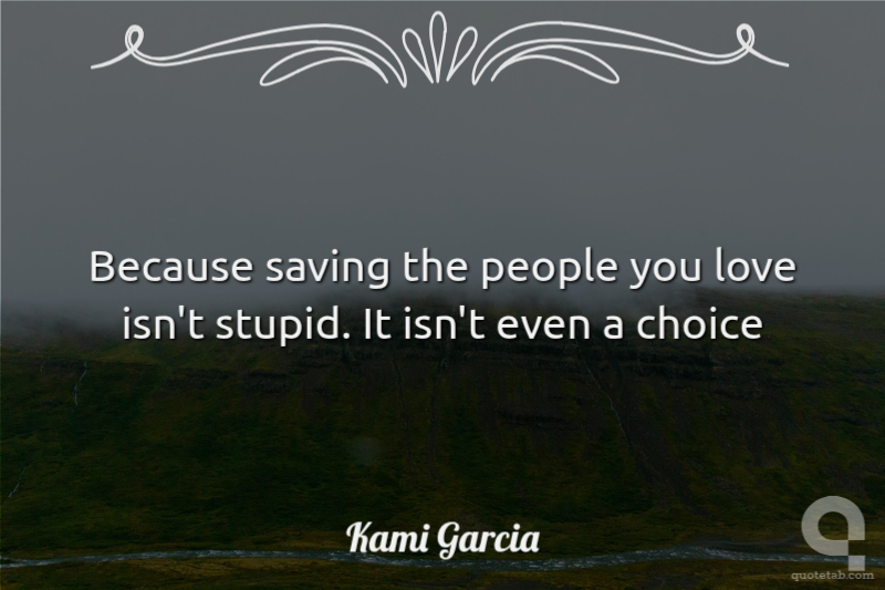 Because saving the people you love isn't stupid. It isn't even a choice