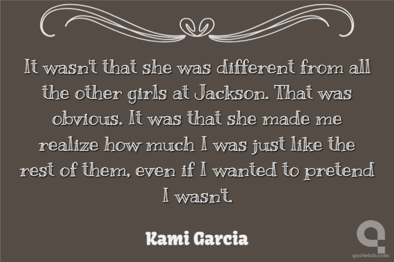 It wasn't that she was different from all the other girls at Jackson. That was obvious. It was that she made me realize how much I was just like the rest of them, even if I wanted to pretend I wasn't.