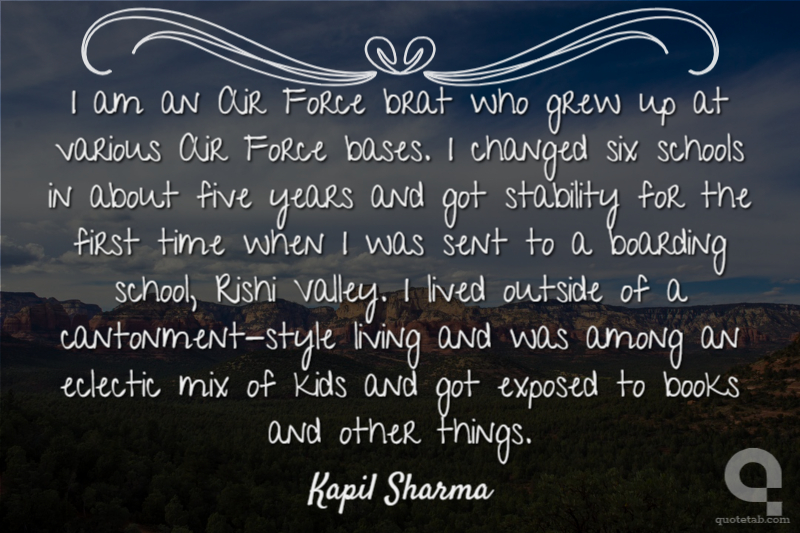 I am an Air Force brat who grew up at various Air Force bases. I changed six schools in about five years and got stability for the first time when I was sent to a boarding school, Rishi Valley. I lived outside of a cantonment-style living and was among an eclectic mix of kids and got exposed to books and other things.