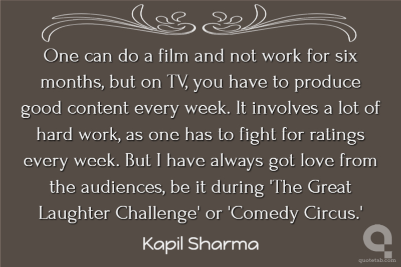 One can do a film and not work for six months, but on TV, you have to produce good content every week. It involves a lot of hard work, as one has to fight for ratings every week. But I have always got love from the audiences, be it during 'The Great Laughter Challenge' or 'Comedy Circus.'
