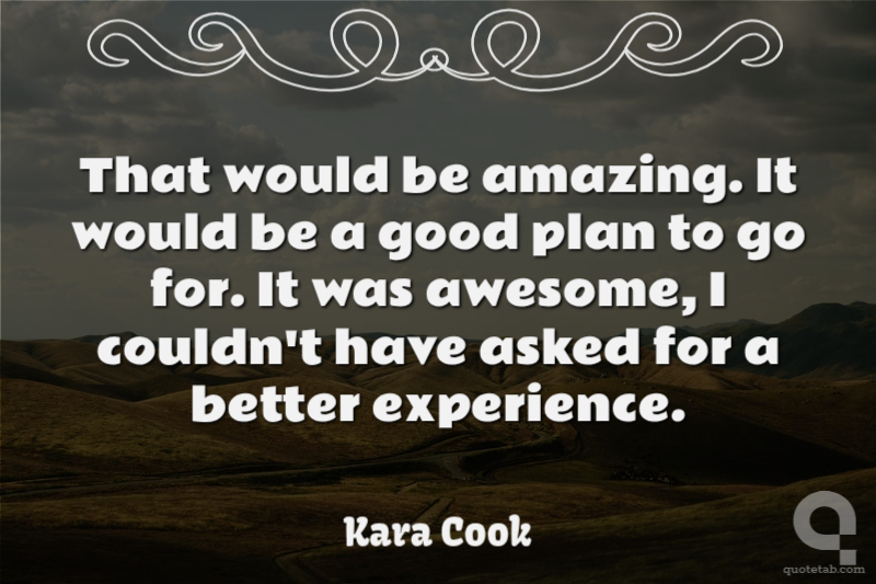 That would be amazing. It would be a good plan to go for. It was awesome, I couldn't have asked for a better experience.