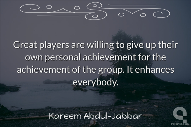 Great players are willing to give up their own personal achievement for the achievement of the group. It enhances everybody.