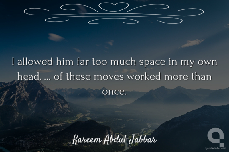 I allowed him far too much space in my own head, ... of these moves worked more than once.