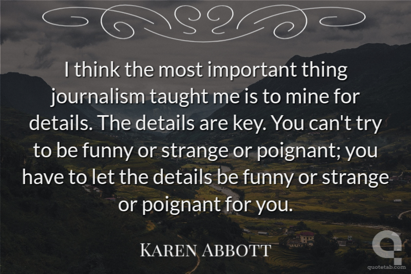 I think the most important thing journalism taught me is to mine for details. The details are key. You can't try to be funny or strange or poignant; you have to let the details be funny or strange or poignant for you.
