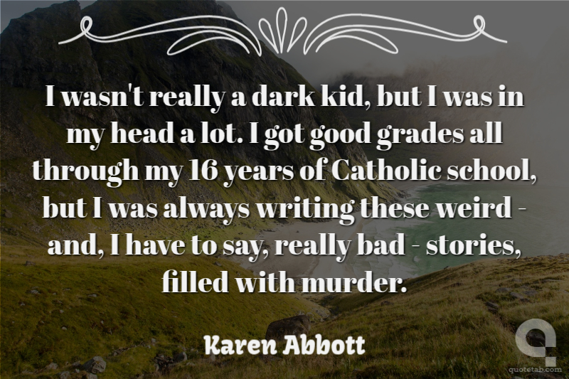 I wasn't really a dark kid, but I was in my head a lot. I got good grades all through my 16 years of Catholic school, but I was always writing these weird - and, I have to say, really bad - stories, filled with murder.