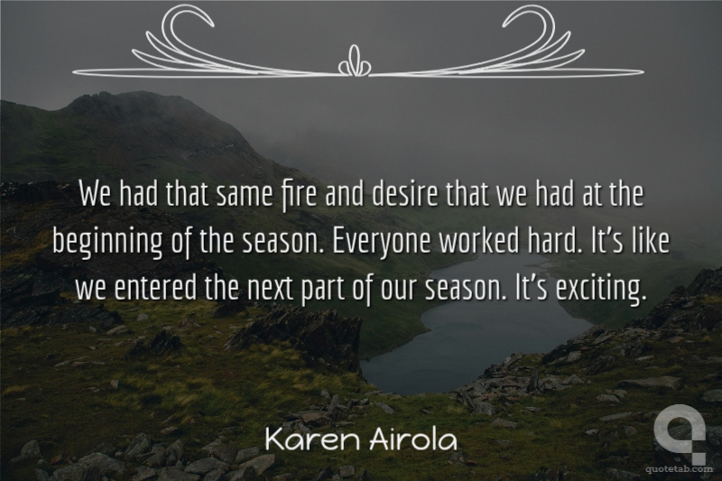 We had that same fire and desire that we had at the beginning of the season. Everyone worked hard. It's like we entered the next part of our season. It's exciting.