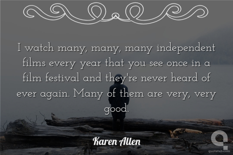 I watch many, many, many independent films every year that you see once in a film festival and they're never heard of ever again. Many of them are very, very good.