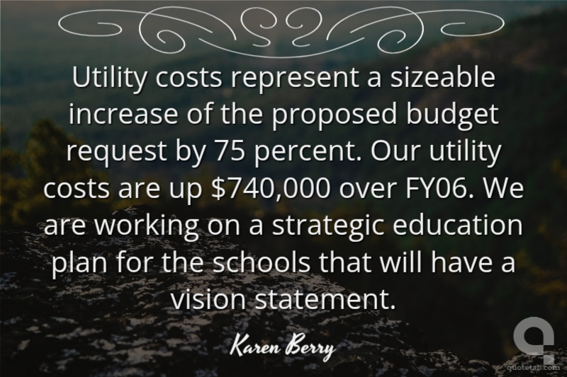 Utility costs represent a sizeable increase of the proposed budget request by 75 percent. Our utility costs are up $740,000 over FY06. We are working on a strategic education plan for the schools that will have a vision statement.