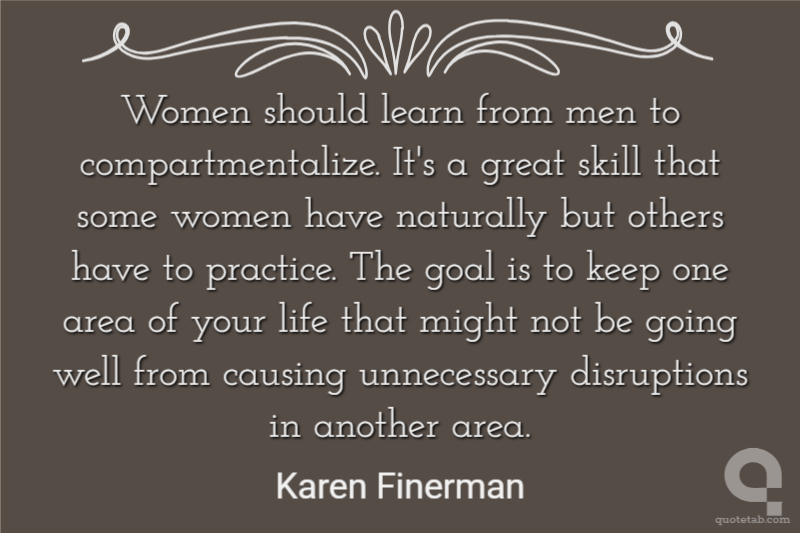 Women should learn from men to compartmentalize. It's a great skill that some women have naturally but others have to practice. The goal is to keep one area of your life that might not be going well from causing unnecessary disruptions in another area.