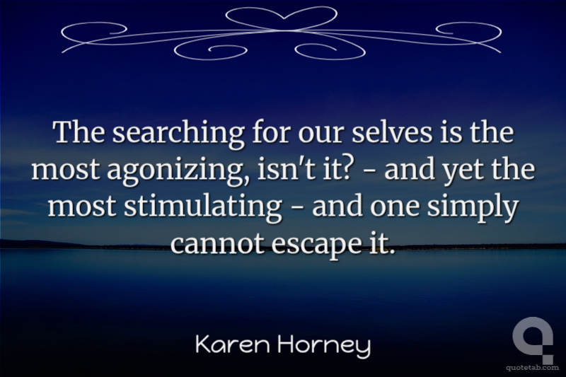 The searching for our selves is the most agonizing, isn't it? - and yet the most stimulating - and one simply cannot escape it.