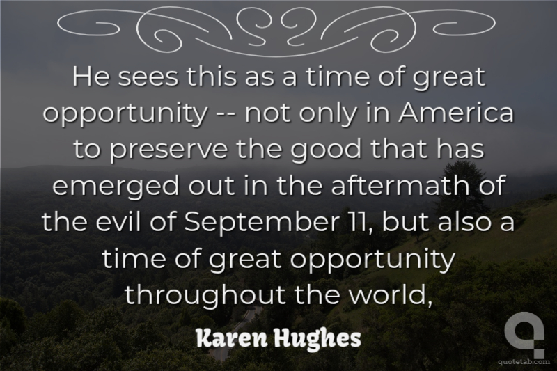 He sees this as a time of great opportunity -- not only in America to preserve the good that has emerged out in the aftermath of the evil of September 11, but also a time of great opportunity throughout the world,