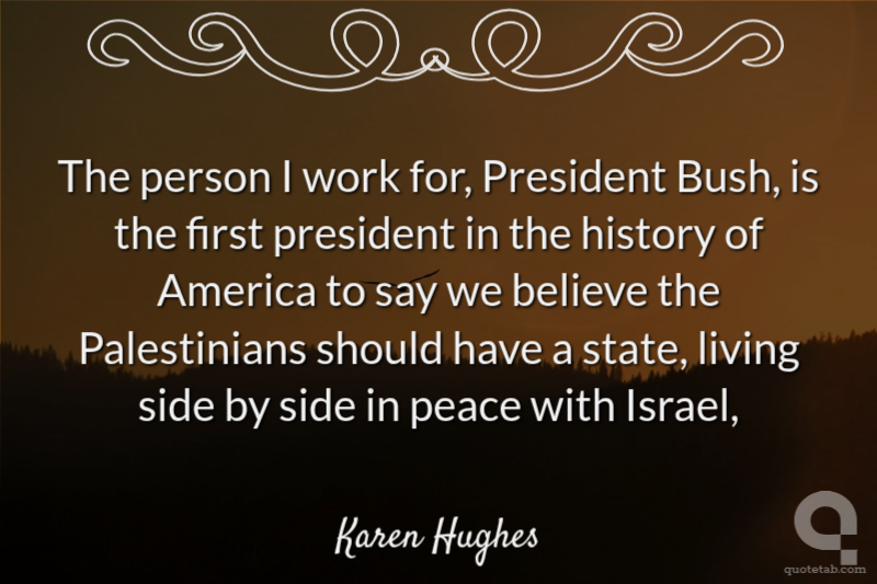 The person I work for, President Bush, is the first president in the history of America to say we believe the Palestinians should have a state, living side by side in peace with Israel,
