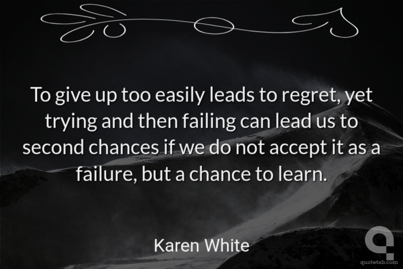 To give up too easily leads to regret, yet trying and then failing can lead us to second chances if we do not accept it as a failure, but a chance to learn.