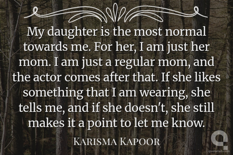My daughter is the most normal towards me. For her, I am just her mom. I am just a regular mom, and the actor comes after that. If she likes something that I am wearing, she tells me, and if she doesn't, she still makes it a point to let me know.