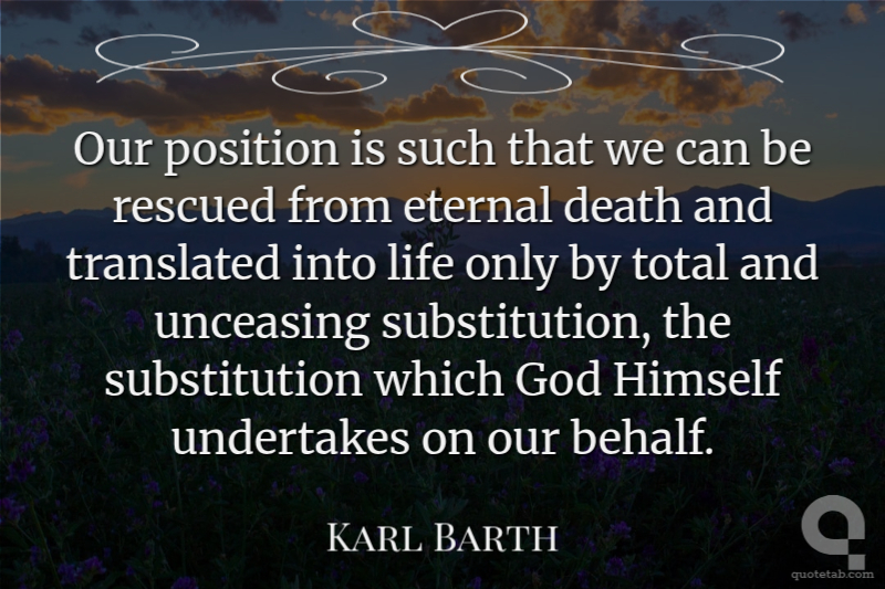 Our position is such that we can be rescued from eternal death and translated into life only by total and unceasing substitution, the substitution which God Himself undertakes on our behalf.