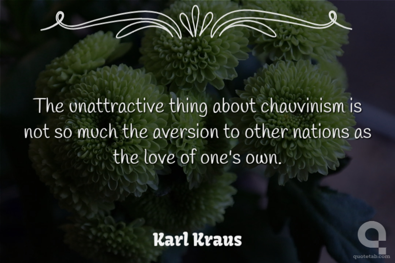 The unattractive thing about chauvinism is not so much the aversion to other nations as the love of one's own.