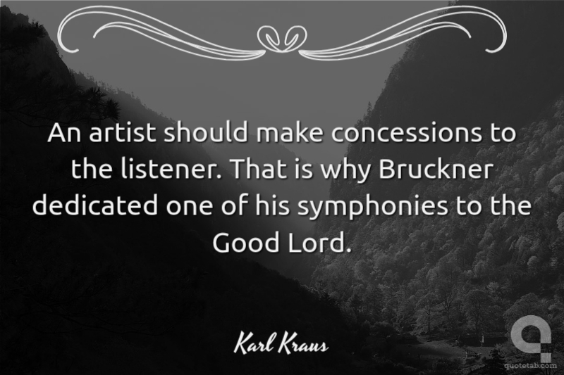 An artist should make concessions to the listener. That is why Bruckner dedicated one of his symphonies to the Good Lord.