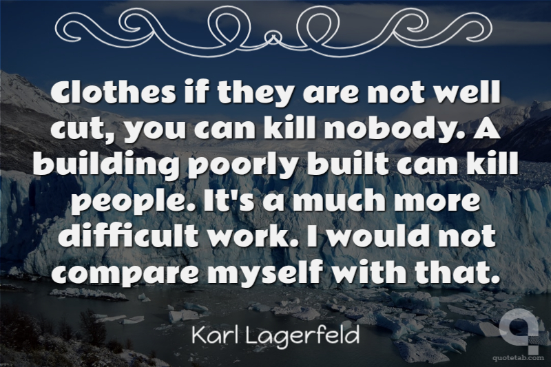 Clothes if they are not well cut, you can kill nobody. A building poorly built can kill people. It's a much more difficult work. I would not compare myself with that.