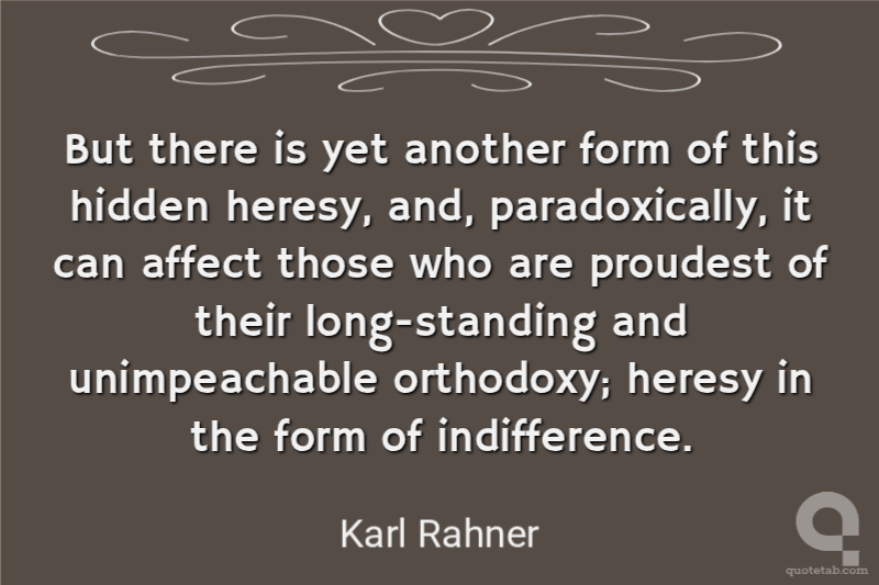 But there is yet another form of this hidden heresy, and, paradoxically, it can affect those who are proudest of their long-standing and unimpeachable orthodoxy; heresy in the form of indifference.