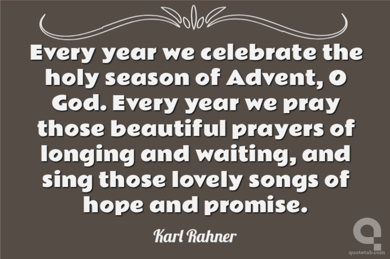 Every year we celebrate the holy season of Advent, O God. Every year we pray those beautiful prayers of longing and waiting, and sing those lovely songs of hope and promise.