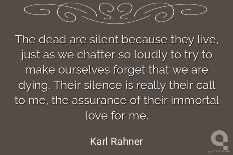 The dead are silent because they live, just as we chatter so loudly to try to make ourselves forget that we are dying. Their silence is really their call to me, the assurance of their immortal love for me.