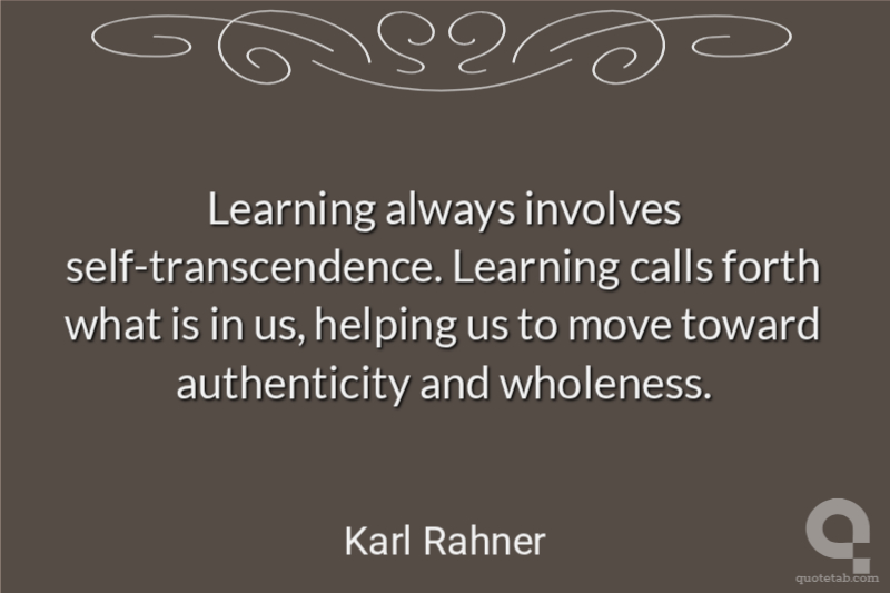 Learning always involves self-transcendence. Learning calls forth what is in us, helping us to move toward authenticity and wholeness.