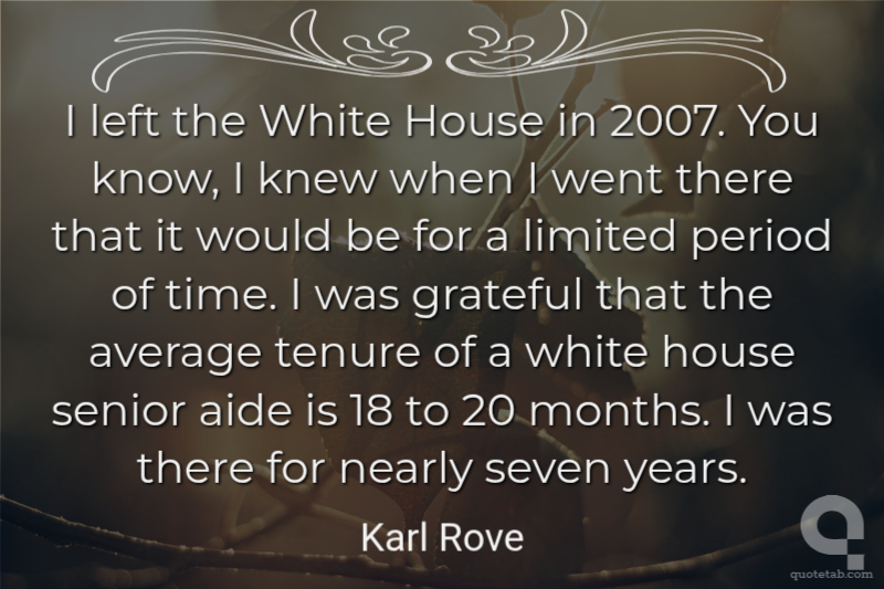I left the White House in 2007. You know, I knew when I went there that it would be for a limited period of time. I was grateful that the average tenure of a white house senior aide is 18 to 20 months. I was there for nearly seven years.