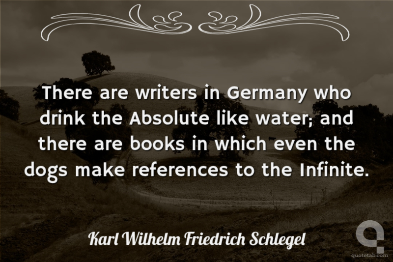 There are writers in Germany who drink the Absolute like water; and there are books in which even the dogs make references to the Infinite.